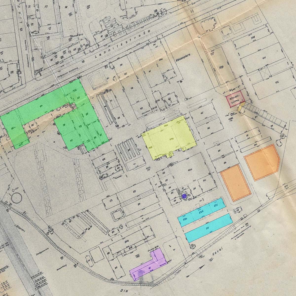 The Stadtarchiv Oranienburg holds a photograph of Lindenstraße dating from 1964. Hence the Lindenstraße, which is located in the middle of the former factory site, had been rebuildt by this time at the latest.
